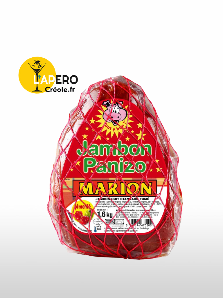 Le Panizo avec piment de la Maison Marion, c’est le jambon créole festif avec du caractère. Une pièce d’environ 1,5kg à 1,6kg, déjà cuite, prête à passer au four ou à être tranchée. Cette version pimentée est aromatisée avec un piment antillais parfumé, qui ne domine pas le goût, mais qui met en valeur la viande et apporte le petit “kick” que l’on aime en Martinique et en Guadeloupe. C’est la pièce parfaite pour ceux qui veulent une vraie identité créole dans l’assiette.