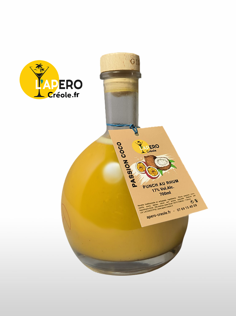 Punch Apéro Créole saveur passion coco, c’est le résultat d’un travail du rhum, de fruits et d’épices qui sauront faire voyager vos papilles outre-mer.